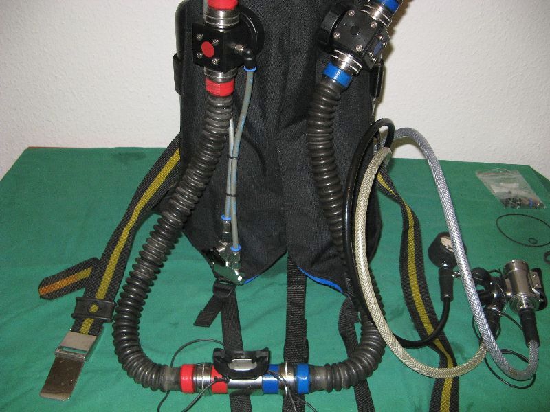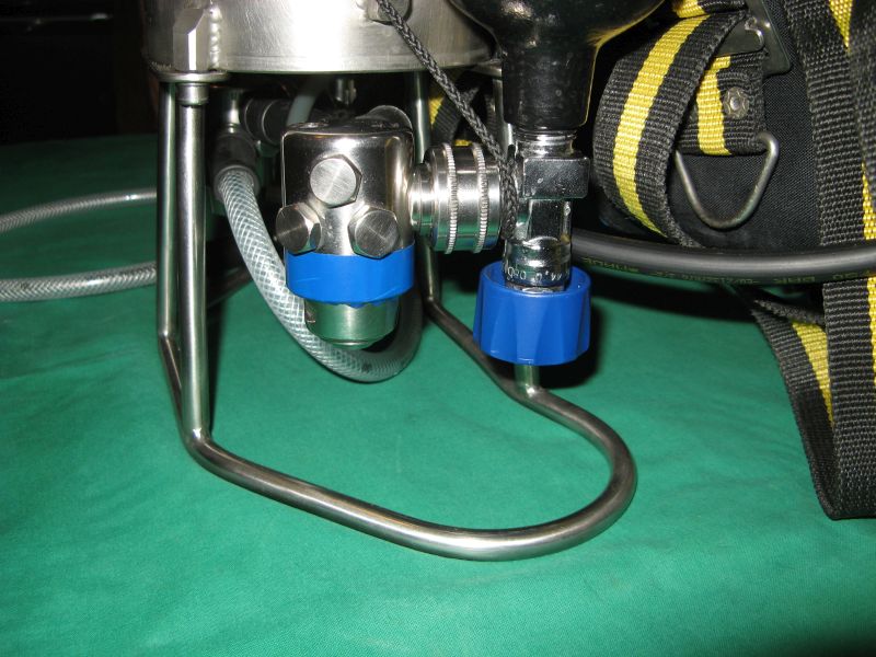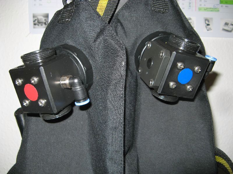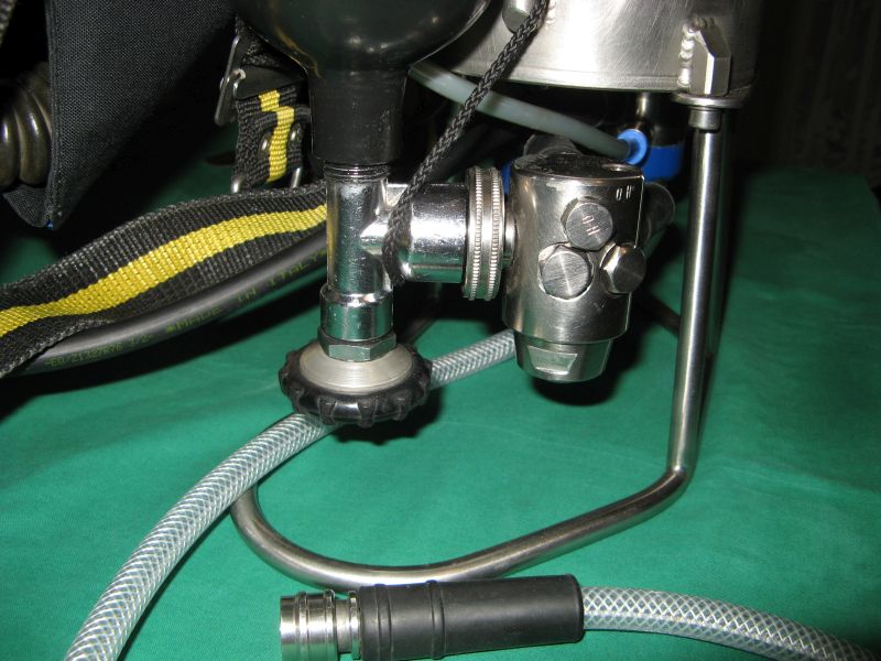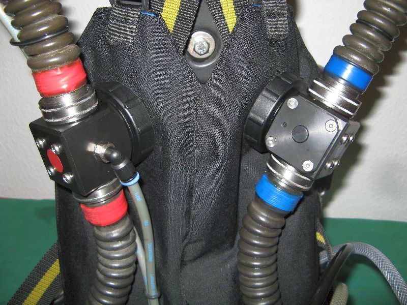 Optional kann beim Mischgastauchen (TG > 6 m Wassertiefe) über ein manuelles Sauerstoff-Zuschussventil und einem manuellen Diluent-Zuschussventil der gewünschte PPO2-Wert eingestellt werden.