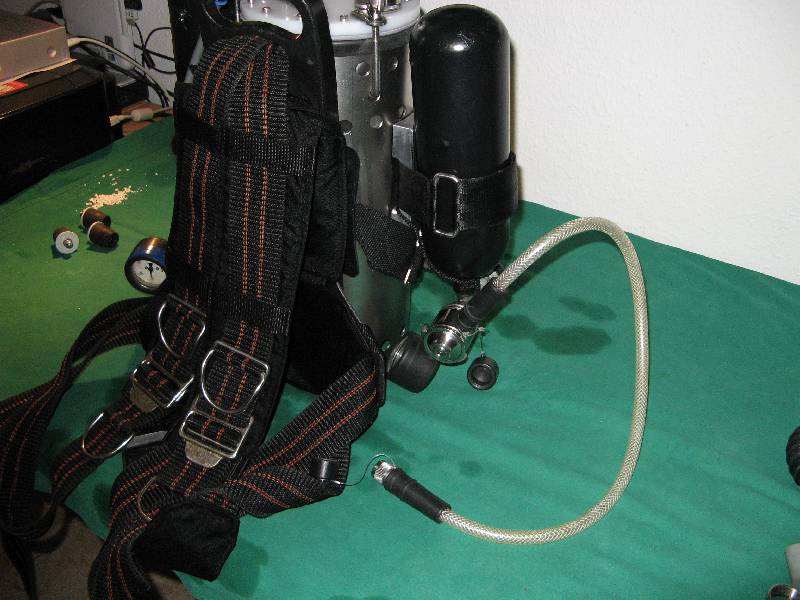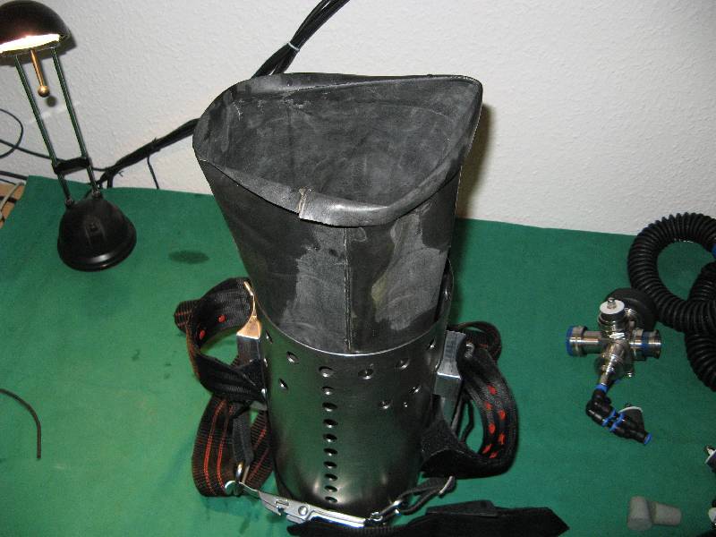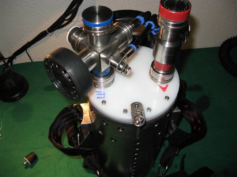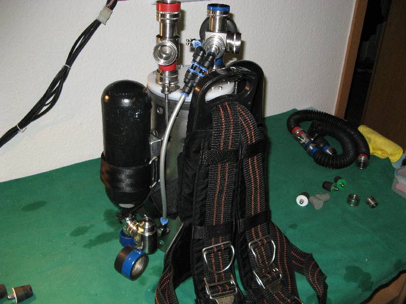 Sauerstoffflasche mit Hochdruckstufe und Anschluss an den LA |